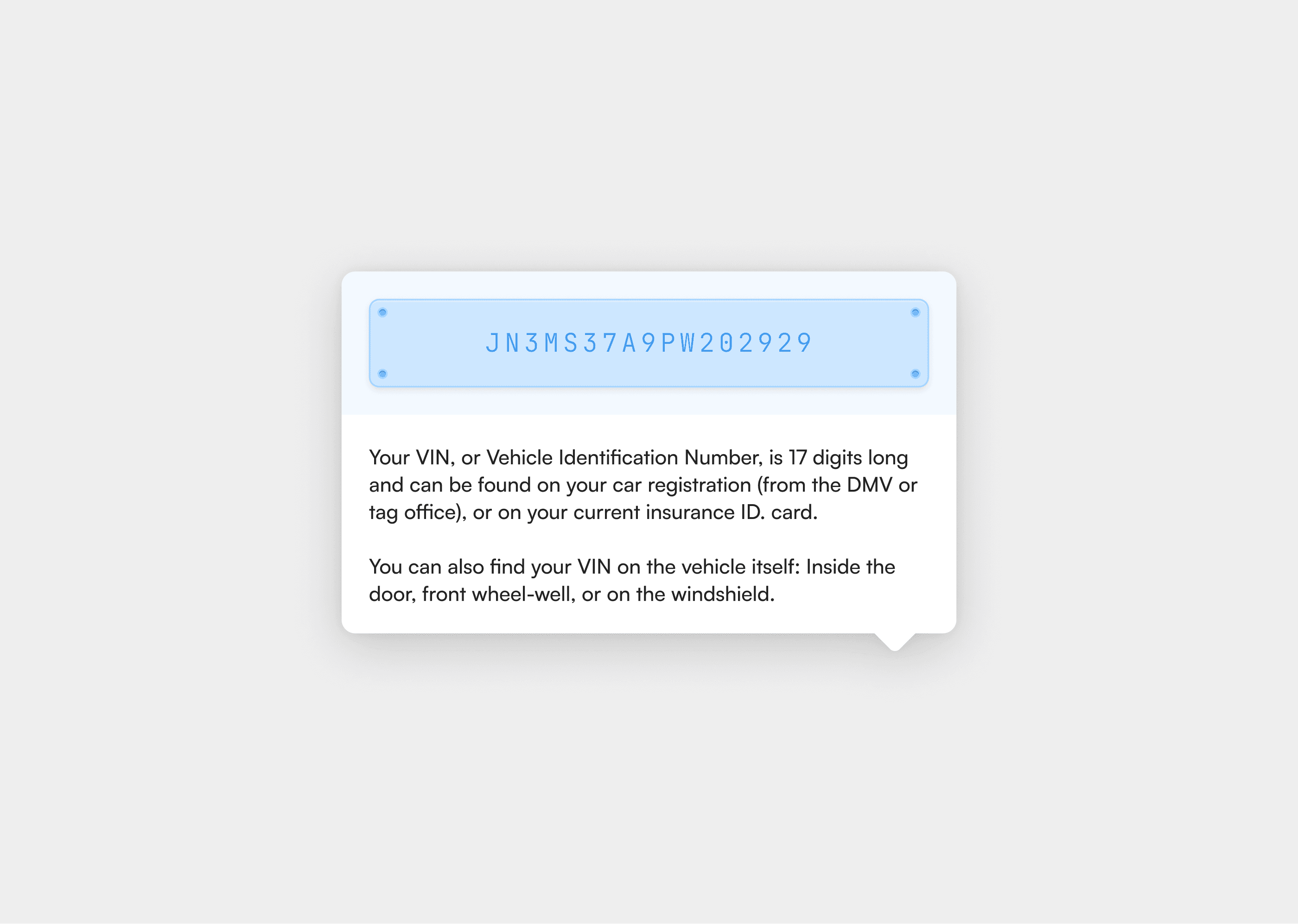 Searching for their vehicle via VIN, or